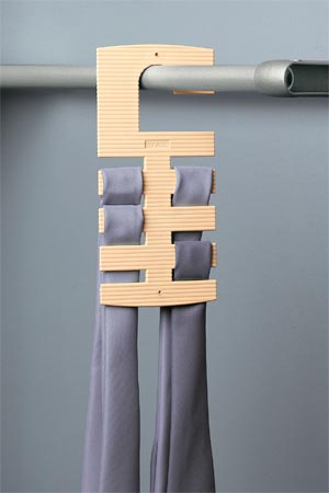 Tie-rack with incorporated hook, for 8 ties. It is made of plastic material.